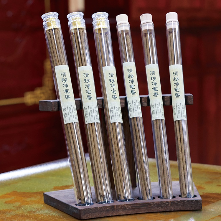 从选料、炮制、晾晒,到研磨、配伍、揉泥、捶打、醒泥....我 们严格循古,悉心手作。再经塑形、阴干、沉淀,时间慢慢凝练,终 成一支传统香道臻品。