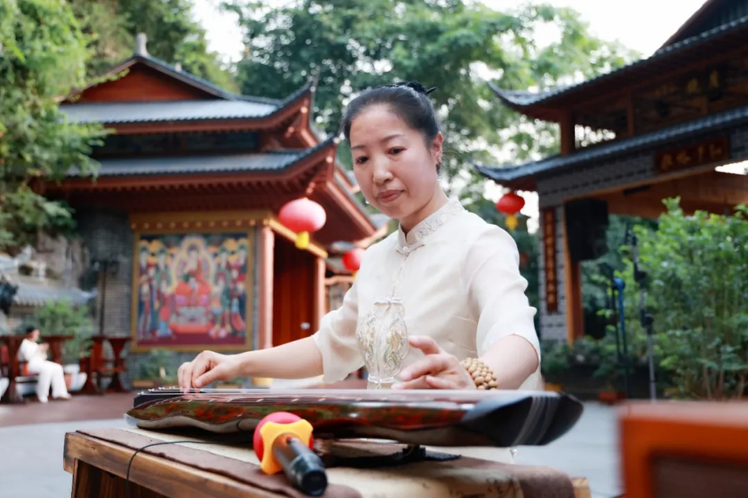 晚会上弹奏古琴