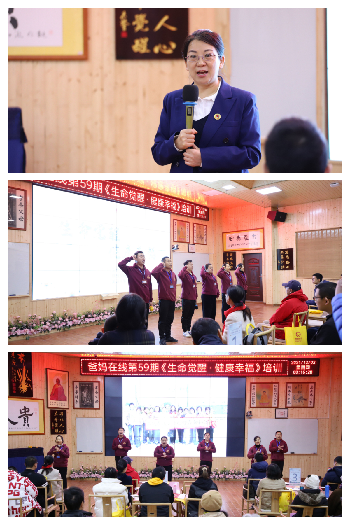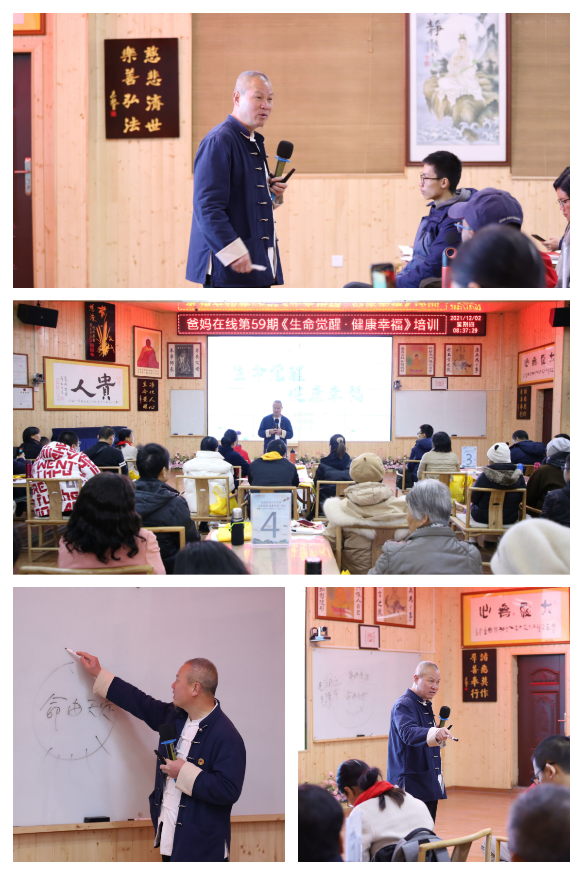 12月2日,爸妈在线2021年度的收官培训——第59期“生命觉醒 健康幸福”培训正式开幕。在繁忙的年末,学员们依然奔赴到生命觉醒的道路上,有缘听闻中华优秀传统文化,遇到指引正道的人生导师,学海无涯,把握住觉醒的机会,感受传统文化的魅力熏染。