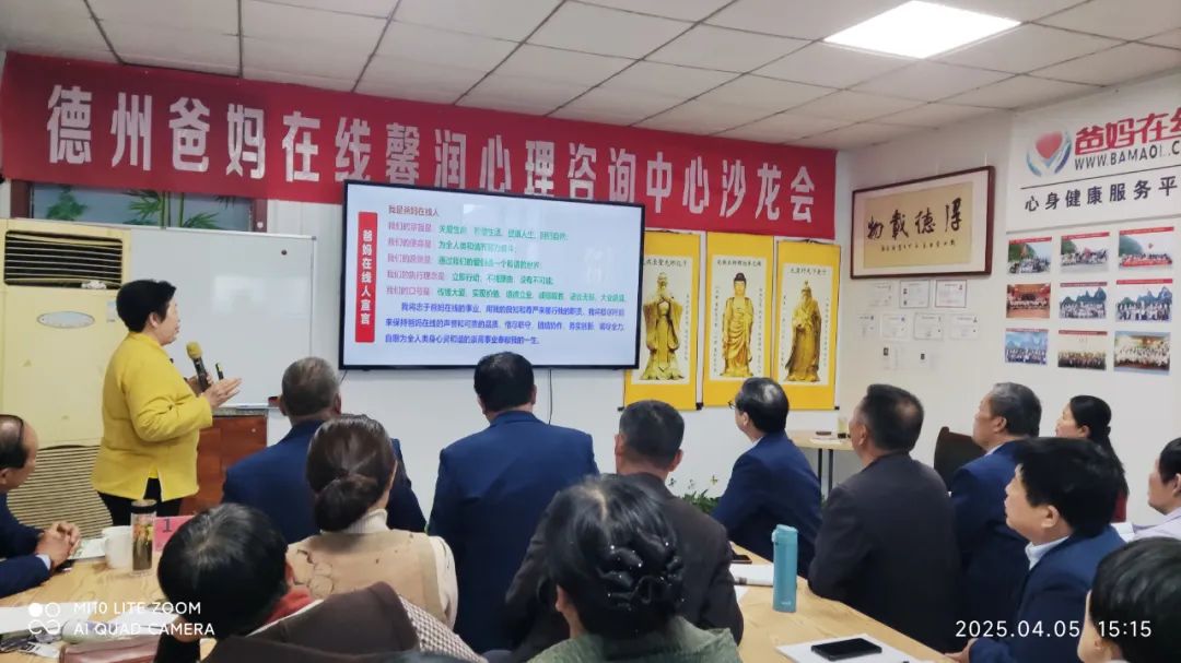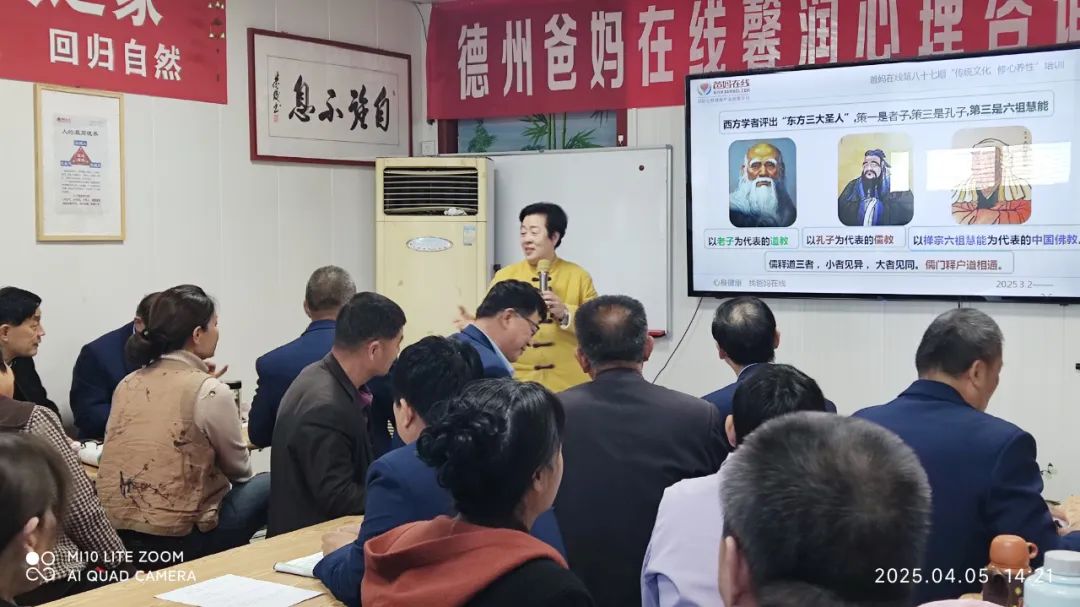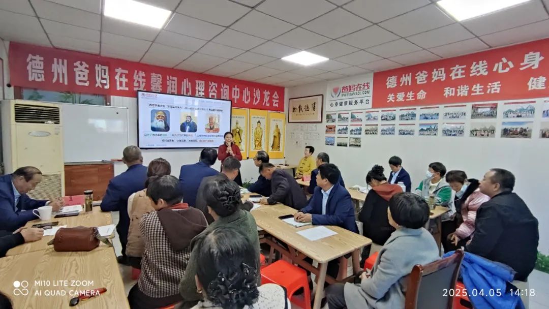 4月5日,清明假期后的首个周六,德州市爸妈在线馨润心理咨询服务中心热闹非凡,2025年第四场(第87期)沙龙会在此盛大开启,主题聚焦“中国优秀传统文化—儒释道文化”,吸引众多文化爱好者共赴这场文化之约。