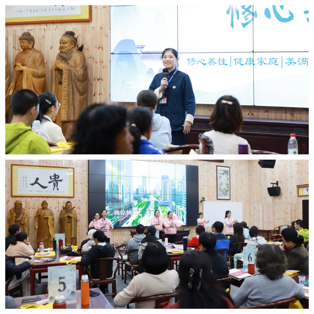爸妈在线总裁陈景英老师,作为本期修习班的班主任,以她特有的亲和力与智慧,通过简单的鼓掌、问候等互动方式,迅速拉近了学员之间的距离,让每一位参与者都感受到了家的温暖。