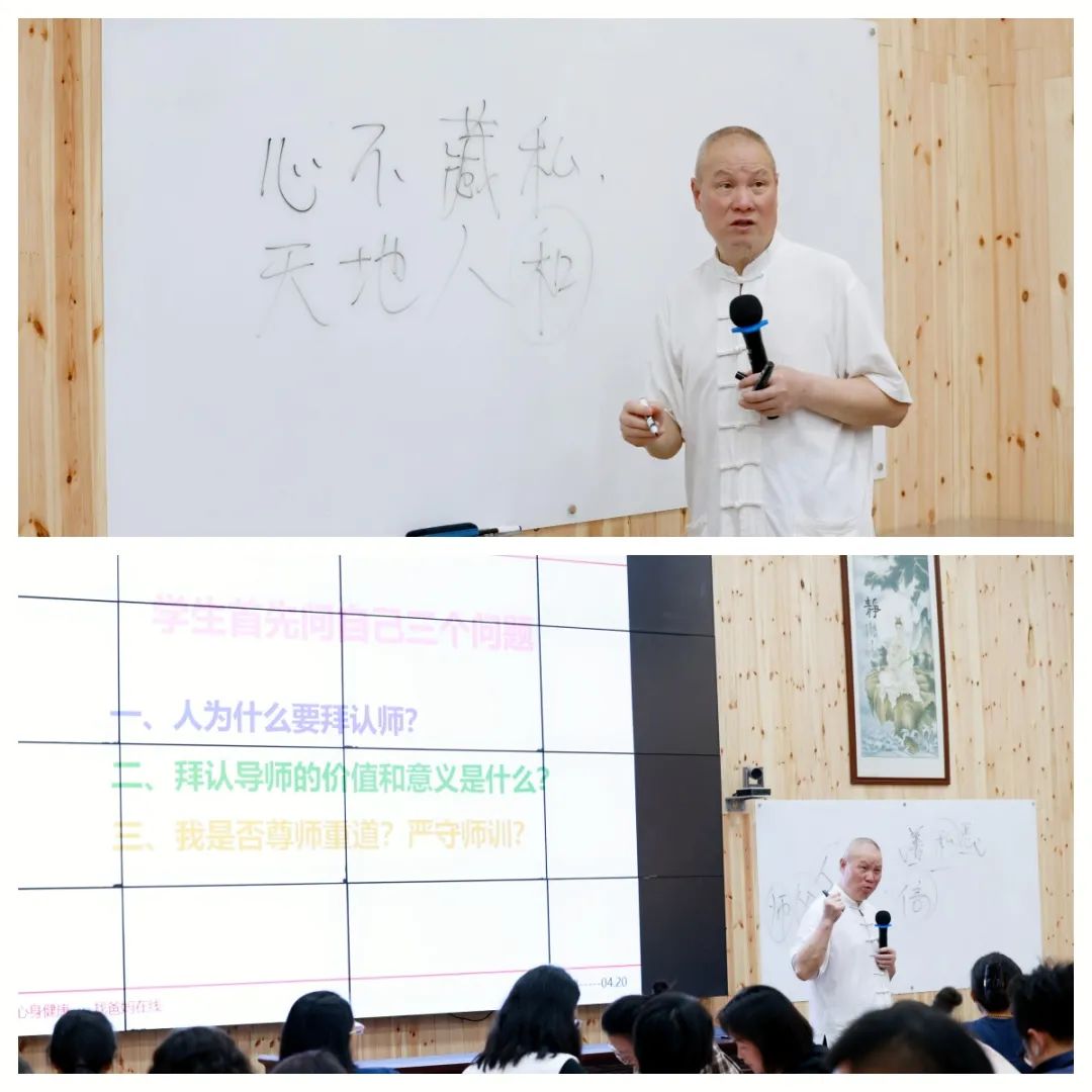 课程中,夏建国老师从导师的价值展开:“当我们在生活中迷失方向,导师便是照亮心灵的引路人,助我们断除我执妄念,证得生命智慧。”他强调,学生需秉持敬畏心、恭敬心、感恩心,通过“听话照做,洗心如镜,善行自渡,利己觉人”的路径,迈向圆满人生。“心不藏私,天地人和”——当个体超越小我、践行利他,方踏入修行之门。他以“诸恶莫作,众善奉行”为修行指针,指引学员在利他中实现生命的升华。