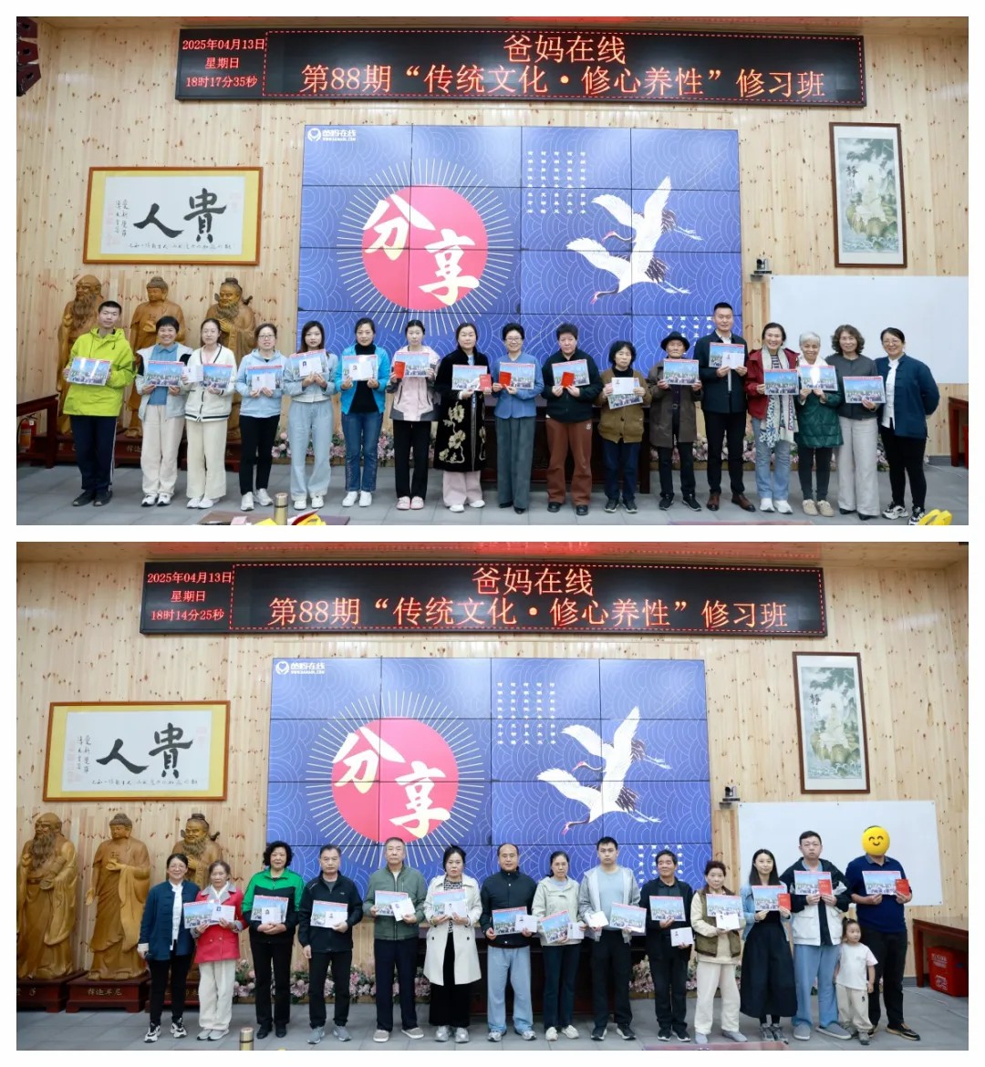 4月13日下午,爸妈在线第88期“传统文化 修心养性”修习班在温馨而感人的氛围中圆满落幕。学员们带着满满的收获与感动,分享着这段修习之旅的点点滴滴,每一个故事都如同一颗璀璨的星辰,照亮了彼此的心灵。