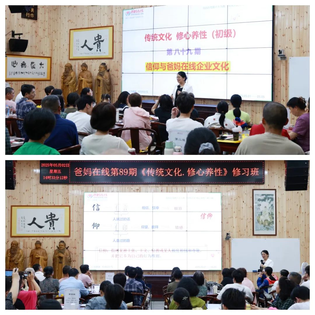 课程中,爸妈在线创始人夏建国老师化身智慧引路人,凭借深厚的文化与哲学底蕴,带领学员开启中国优秀传统文化的探索之旅。课堂上,他以精妙的讲解串联起儒、释、道三大精神宝库:儒家的 “仁、义、礼、智”,揭示了人与人、人与社会的相处之道;佛家的 “慈悲”“空性”,指引学员探寻本心;道家的 “道法自然”“无为而治”,阐释万物运行规律。“世上所发生的一切事情都不会伤害你,伤害你的是你对事情的认知和态度”、“心平万事平” 等金句频出,如春风化雨般滋养学员心田,助其驱散迷茫,重拾宁静从容。