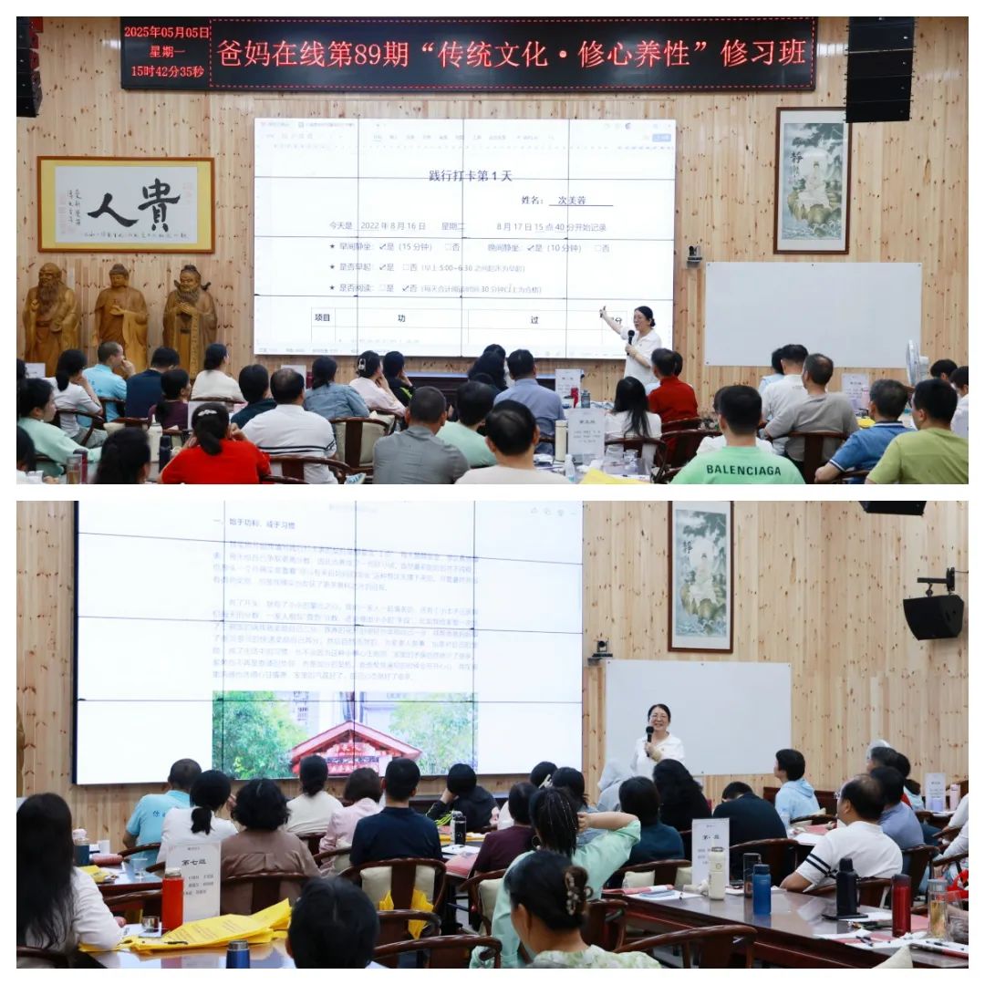 “通过这五天的修习,我从混沌走向清醒,从浮躁走向宁静,明白了人活着的价值和意义是什么。” 学员陆女士的感慨,为爸妈在线第89期 “传统文化 修心养性” 修习班画上了生动注脚。5月5日,这场以 “唯心所现 唯识所变” 为精神内核的修习班,在学员们满载收获的分享中圆满落幕,让这个五一假期成为了一场意义非凡的修心之旅。