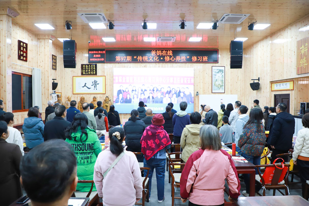 2026年1月1日,元旦佳节,万象更新。爸妈在线第97期“传统文化修心养性”修习班在喜庆与期待中正式拉开帷幕。新年第一天,来自五湖四海的学员们怀揣满满的期盼与能量汇聚于此,共同开启一段涵养心性、启迪智慧...