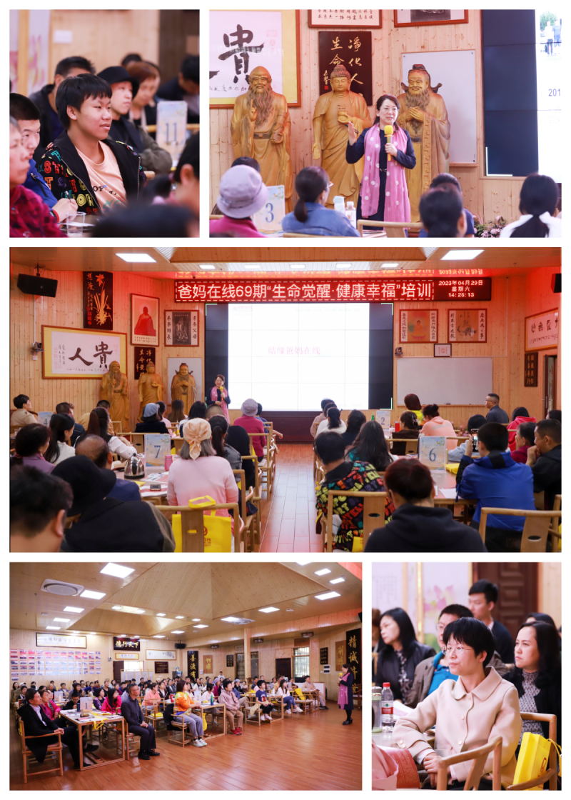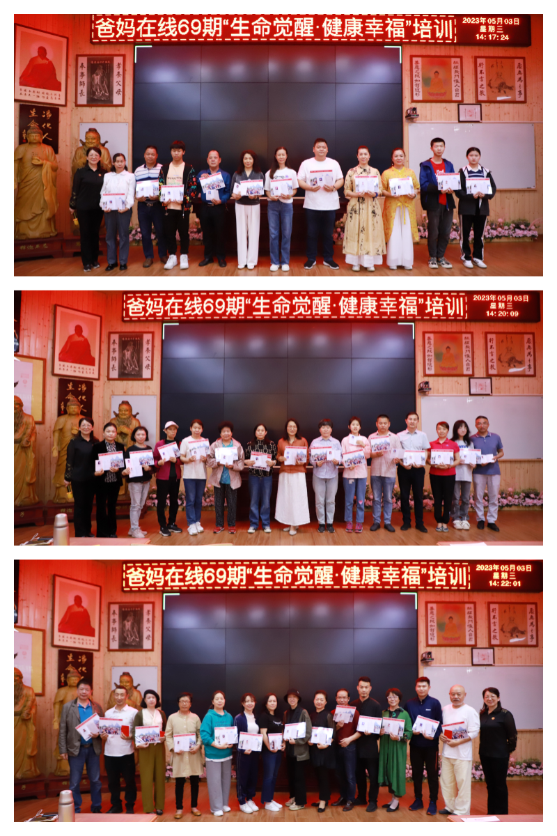 5月3日,随着五一节假期接近尾声,爸妈在线第69期“生命觉醒 健康幸福”培训在学员们“来晚了、活明白了、有方向了、不虚此行……”的分享下圆满落下帷幕。五天的假期,在中华优秀传统文化的大智慧里畅游,学员们大开眼界、各取所需、不亦乐乎。