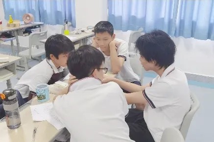 孩子与同学交流学习