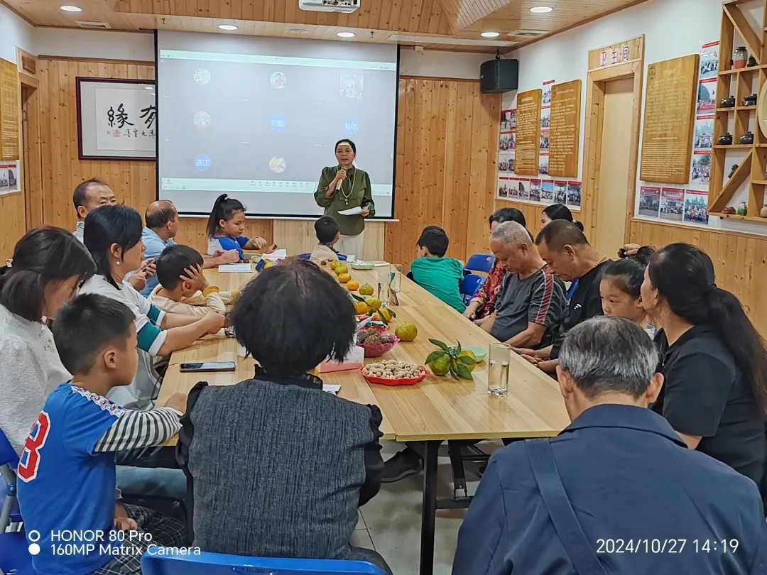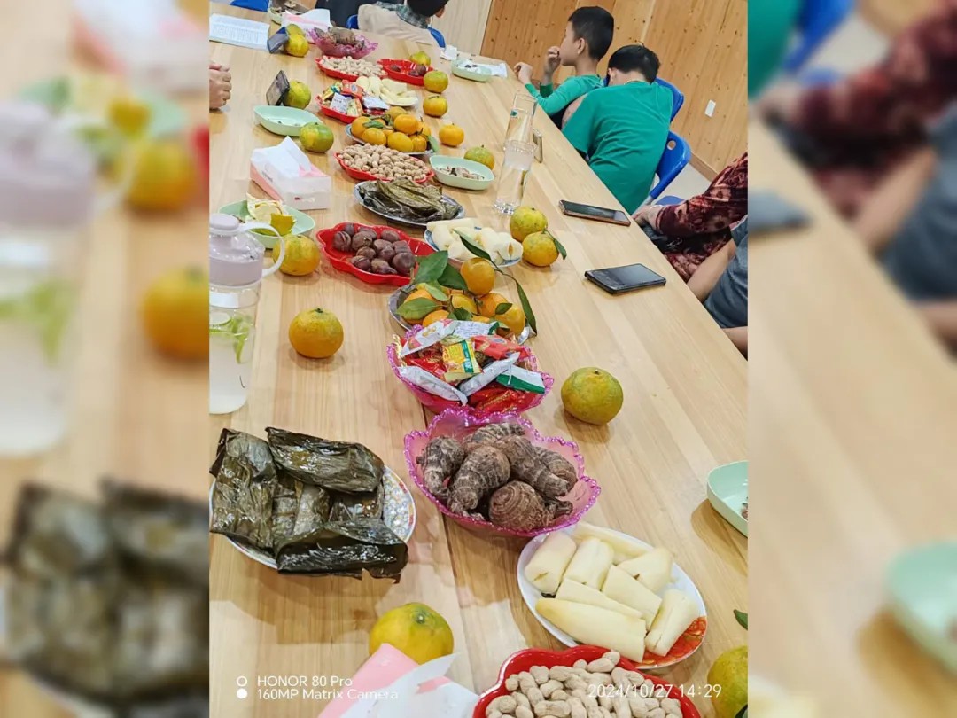 活动现场气氛热烈,家人们不仅畅所欲言,还自发带来了各式各样的爱心水果和特色农产品,摆满了临时设置的展示桌。这些礼物不仅体现了家庭成员之间的深厚情谊,也让聚会增添了更多色彩与温度。大家相互品尝,相互赞美,其乐融融。