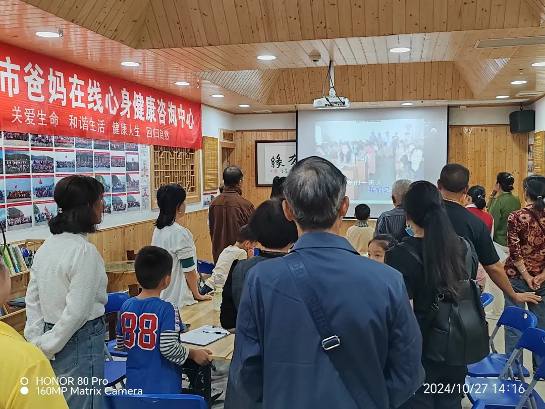 随着主持人韦主任的开场致辞,成员之家的启动活动正式拉开帷幕。阳光撒在宽敞明亮的活动室内,为这一场合增添了几分暖意。首先,韦主任邀请所有人共同聆听爸妈在线的经典歌曲《我们是一家人》,熟悉的旋律在空气中荡漾,勾起了不少爸妈在线成员对往昔岁月的美好回忆。