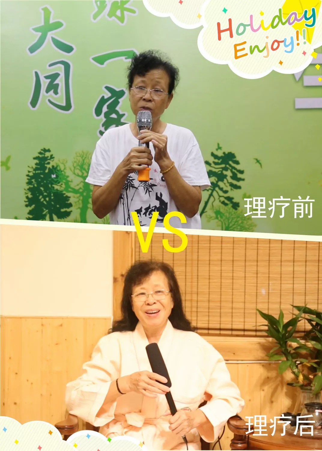 我刚来还没有做理疗的时候,人很瘦的,现在做了理疗人也胖了好多,都是因为那个睡眠好多了,所以我就胖了。你可以把以前的照片和今天的照片对比一下,大家就知道我心情很愉快,很精神了!