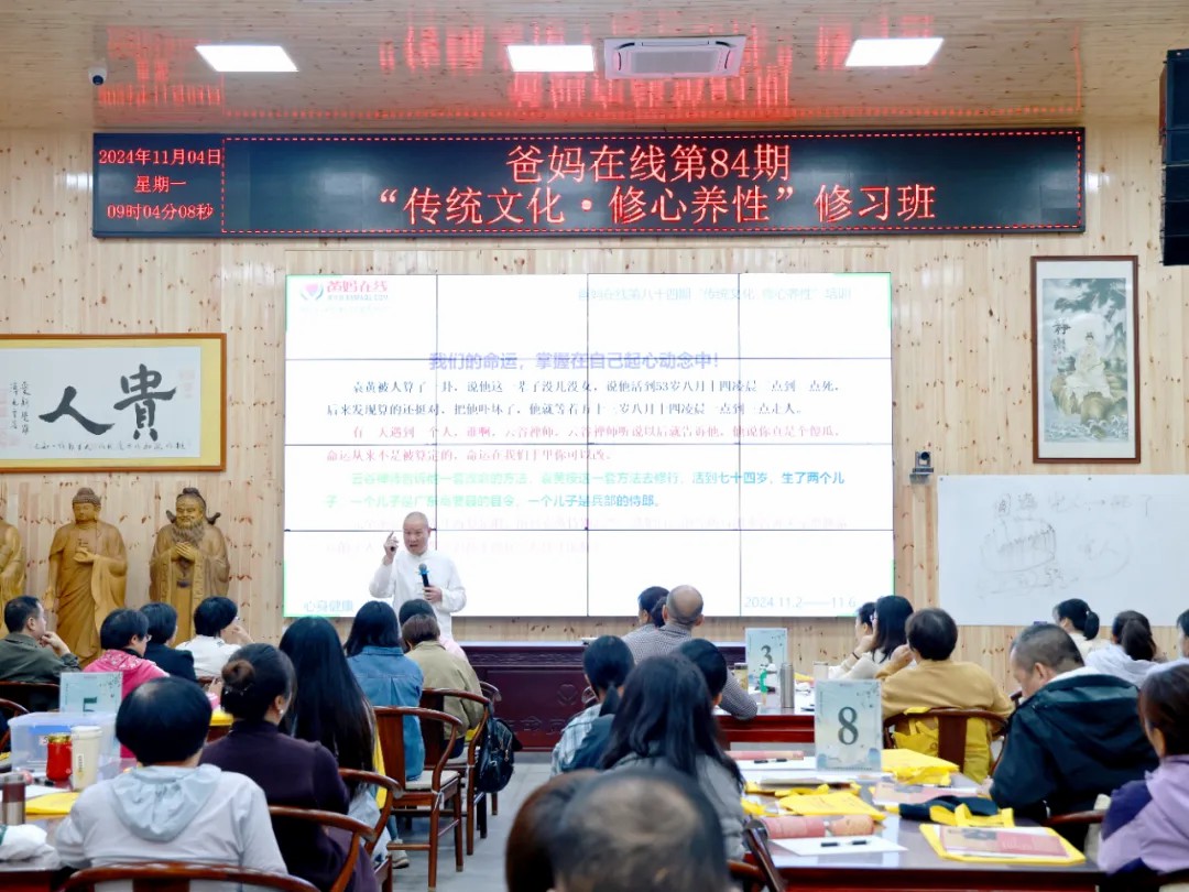 在岁月的长河中,总有一些时光如璀璨星辰,闪耀在生命的苍穹。11月6日下午,爸妈在线第84期 “传统文化 修心养性” 修习班,于学员们深情的修习感悟分享中,画上了圆满的句号,宛如一曲悠扬的乐章,在灵魂深处奏响。
