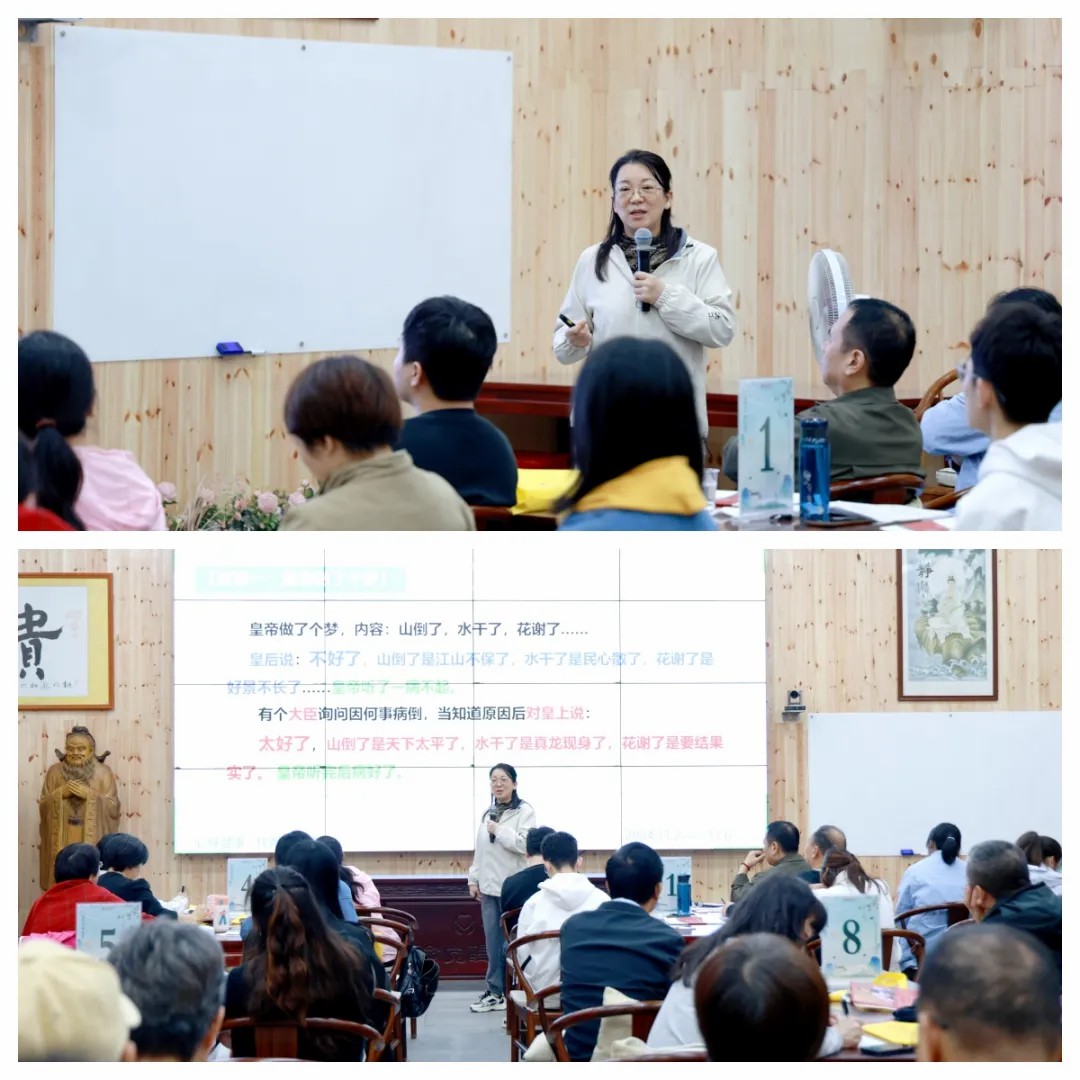 爸妈在线总裁、修习班班主任陈景英老师,以自身与爸妈在线结缘的故事为线,向学员们娓娓道来信仰的力量。那一段段真实可感的故事,一个个发自肺腑的心声,如同一股股暖流,流淌进学员们的心田,让他们深刻感受到信仰对于个人成长和企业发展的非凡意义。同时,陈老师分享的家庭教育核心以及传统文化修习班课程的践行方法,犹如一盏盏明灯。“知者不惑,仁者不忧,勇者不惧。” 在面对困难时,懂得每一次跌倒都是学习,每一份痛苦都有价值,每一次艰辛挑战都是自我强大的磨炼,从而能更好地在生活中践行所学,实现成长。