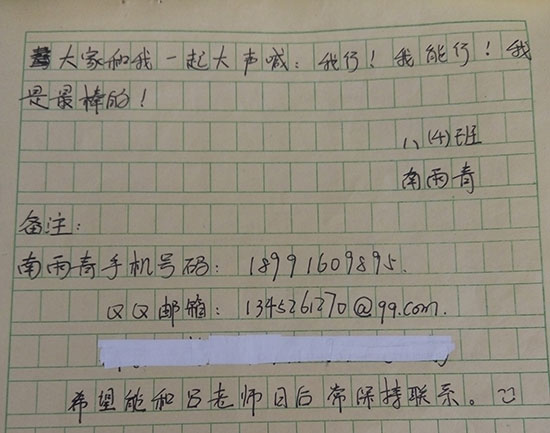 因为平时我活泼、开朗的性格,光荣的被选为我们八(4)班的“心理委员”。我暗自得意,嘿嘿,老班头,不错!有眼光!今天我怀着好奇激动的心情,第一次参加了一个“心理委员”的培训。