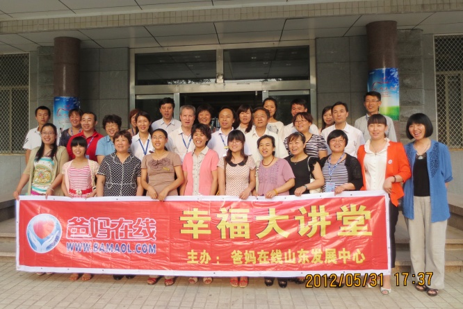 2012年5月30日至31日,爸妈在线总部宣讲团莅临山东省心理发展中心,胡总、杨总对山东省心理发展中心工作进行调研、指导、规划,并在“济南职业学院”举行了幸福巡讲。