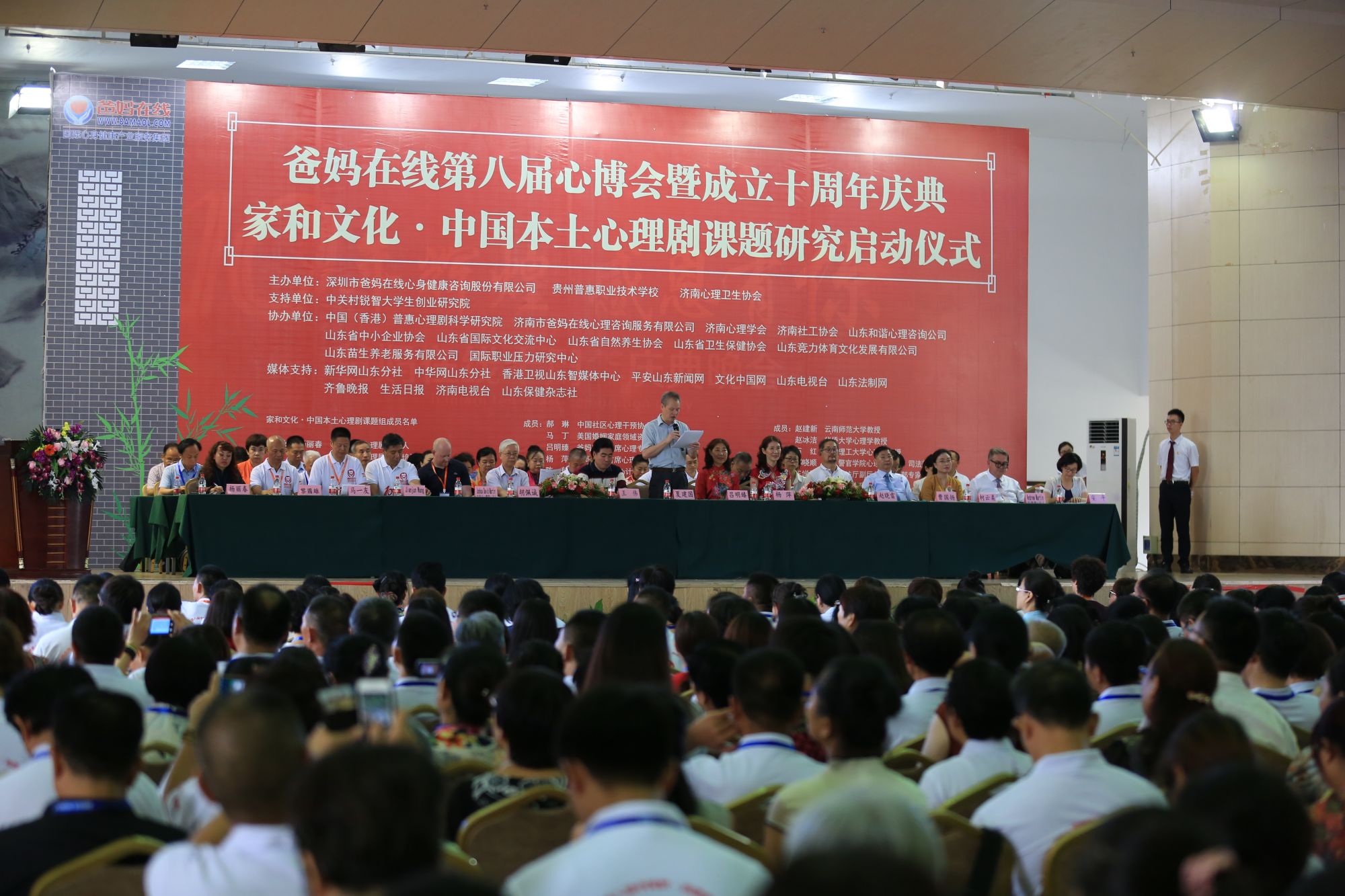 最后,我宣布,第八届中国梦·和谐世界应用心理学博览会暨爸妈在线十年大庆正式开幕!家和文化中国本土心理剧课题研究正式启动!