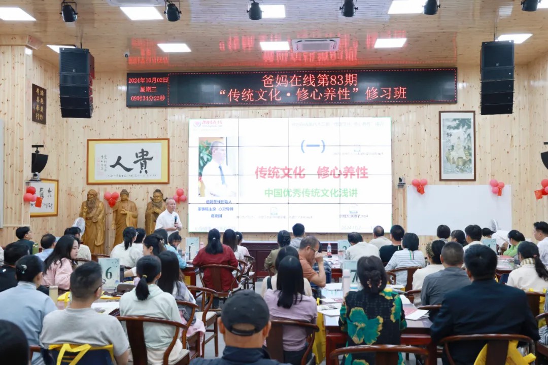 又是一年国庆佳节,当大多数人选择踏上旅途,游览祖国的大好河山时,却有一群人选择了一条不同寻常的道路——他们走进中国优秀传统文化的殿堂,寻找化解人生困惑的智慧。10月2日,阳光正好,微风不燥,爸妈在线第83期“传统文化 修心养性”修习班在禅心雅院的觉悟堂缓缓拉开帷幕,这里座无虚席,每个人都怀揣着对智慧的渴望,开启了一场心灵的探索之旅。